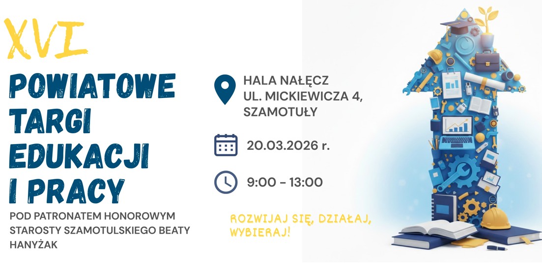 XVI Powiatowe Targi Edukacji i Pracy 20 marca 2026 r. Hala Nałęcz, Szamotuły Razem z Zespół Szkół nr 3 im. Hugona Kołłątaja w Szamotułach serdecznie zapraszamy...